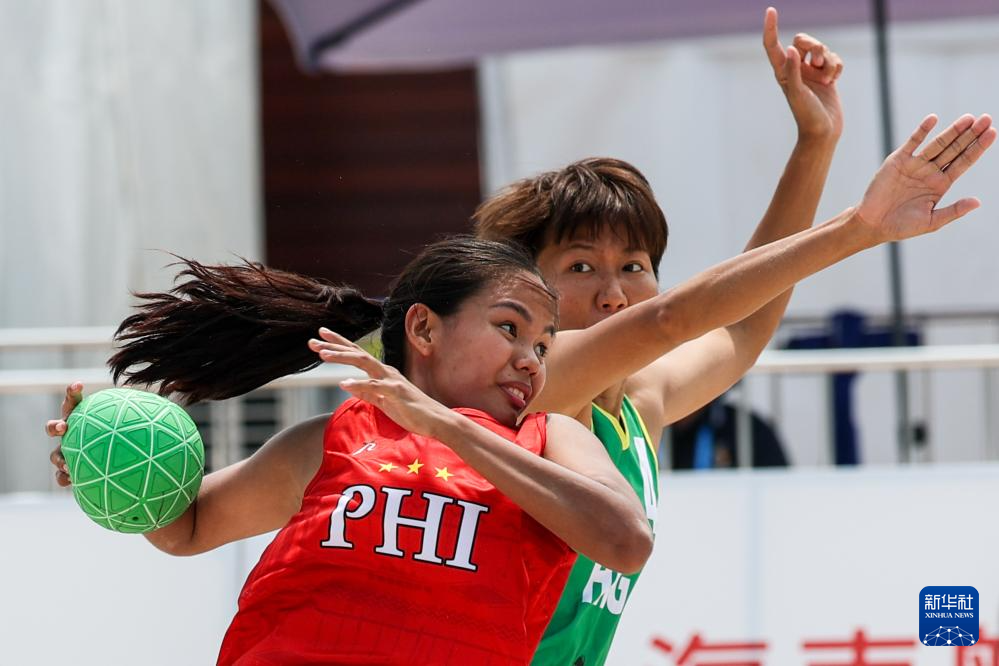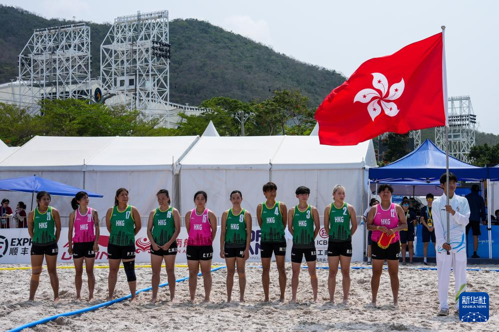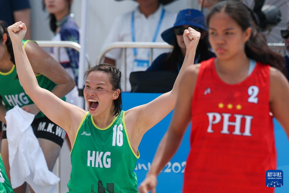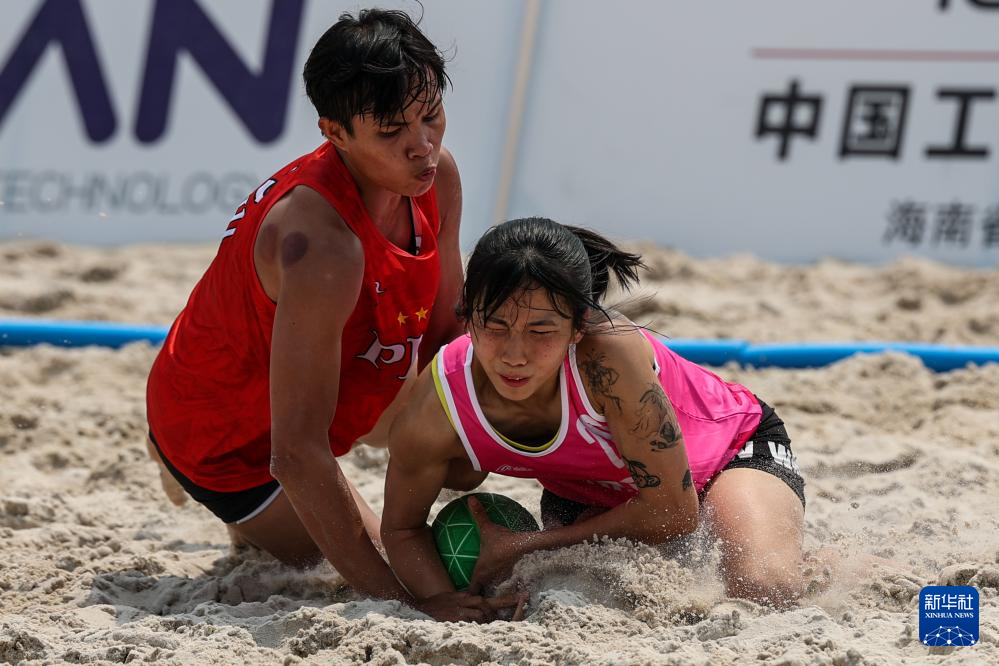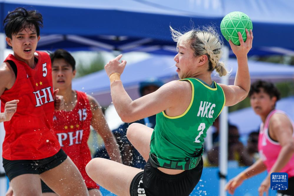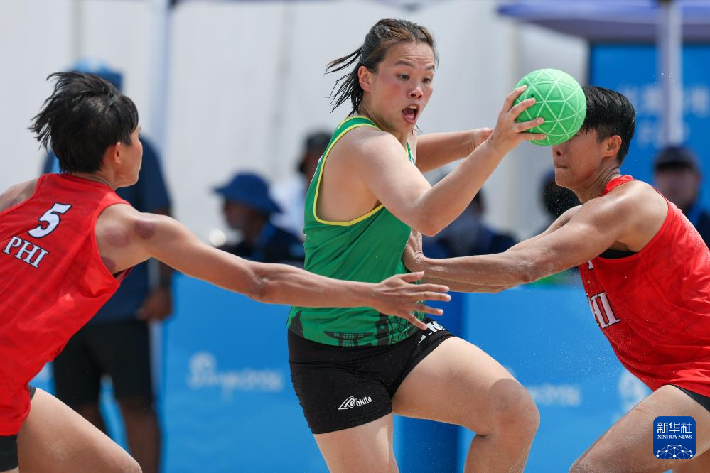 4月23日,在海南三亚举行的第六届亚洲沙滩运动会沙滩手球女子小组赛中,中国香港队2比0战胜菲律宾队。