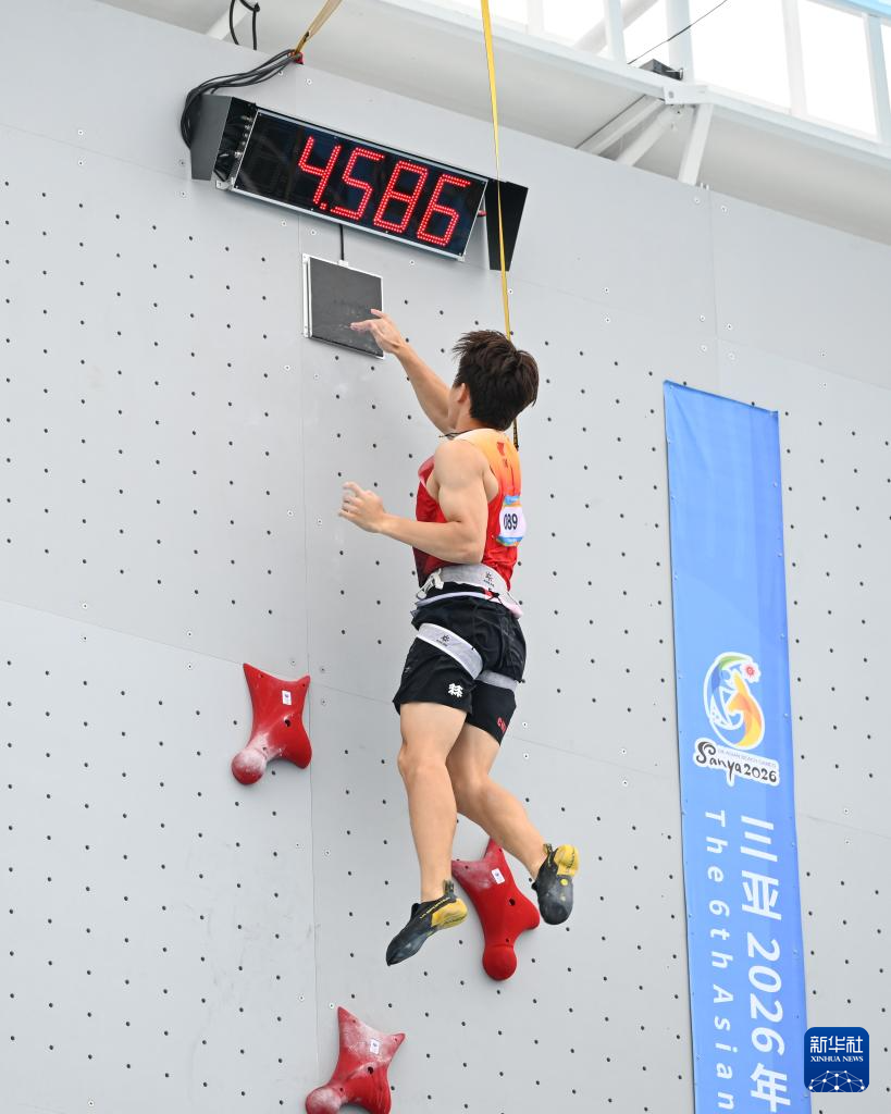 4月28日,在海南三亚进行的第六届亚洲沙滩运动会攀岩速度男子预赛中,中国选手赵一程以4秒58的成绩创造该项目世界纪录,并晋级八分之一决赛。原纪录是由美国选手沃森在2025年攀岩世界杯巴厘岛站中创造的4秒64。