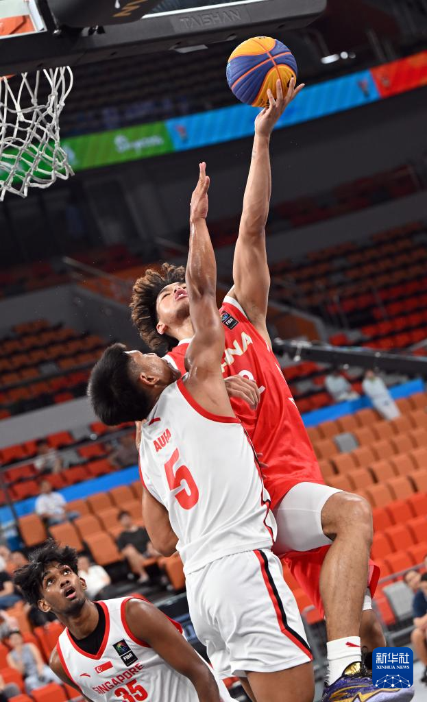 4月28日,在海南三亚举行的第六届亚洲沙滩运动会三人篮球男子淘汰赛中,中国队21比15战胜新加坡队,晋级八强。