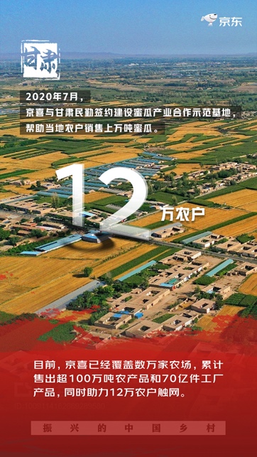 2020年7月,京喜与甘肃民勤签约建设哈密瓜产业合作示范基地,帮助当地农户销售上万吨哈密瓜。