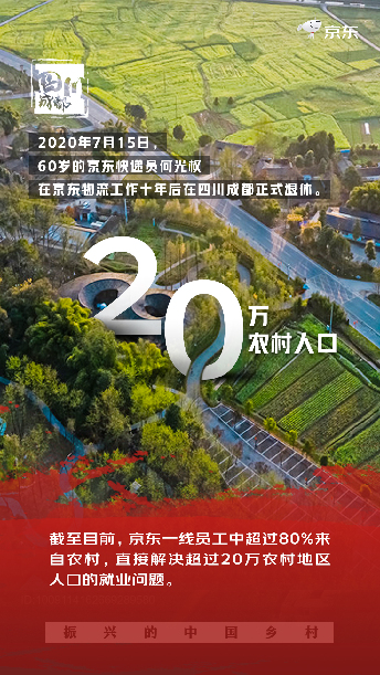 公开资料显示,京东一线员工中超过80%来自农村,通过提供稳定的收入、五险一金等福利,为20余万农村家庭和超过100万农村人口带来收入保障,真正实现“一人就业、全家脱贫”。