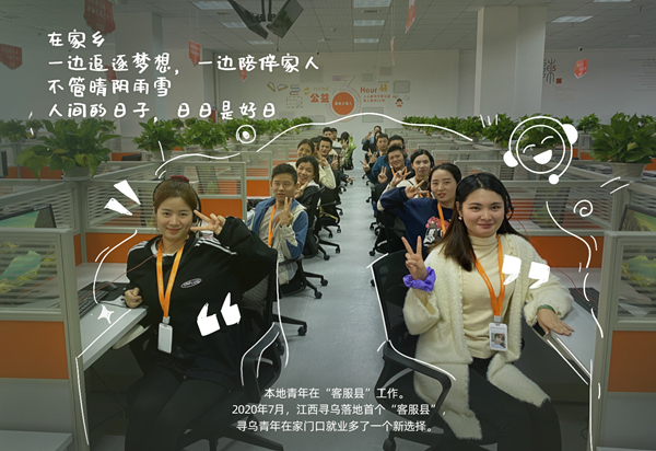 一个偶然机会,陈芦清了解到阿里巴巴集团客户体验事业群(简称CCO)在寻乌的“客服县”项目。这份在家门口的工作不仅有让陈芦清满意的薪水,她也认识了一群志同道合的伙伴。现在陈芦清晋升成队长,管理着一支七八人的小团队。