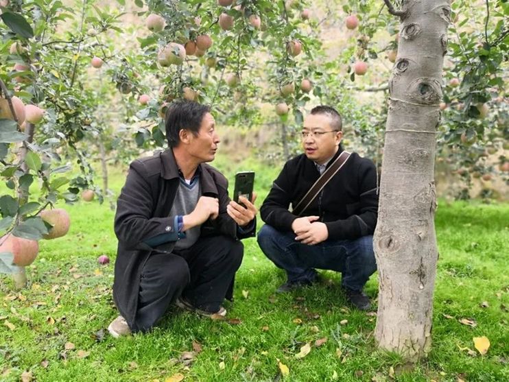 在甘肃礼县,阿里乡村特派员尹贻盼和农民主播张加成大爷讨论直播方案