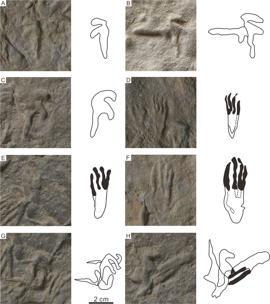 乌尔禾翼龙足迹(新种)正型、副型和重叠足迹。(中科院古脊椎所供图)