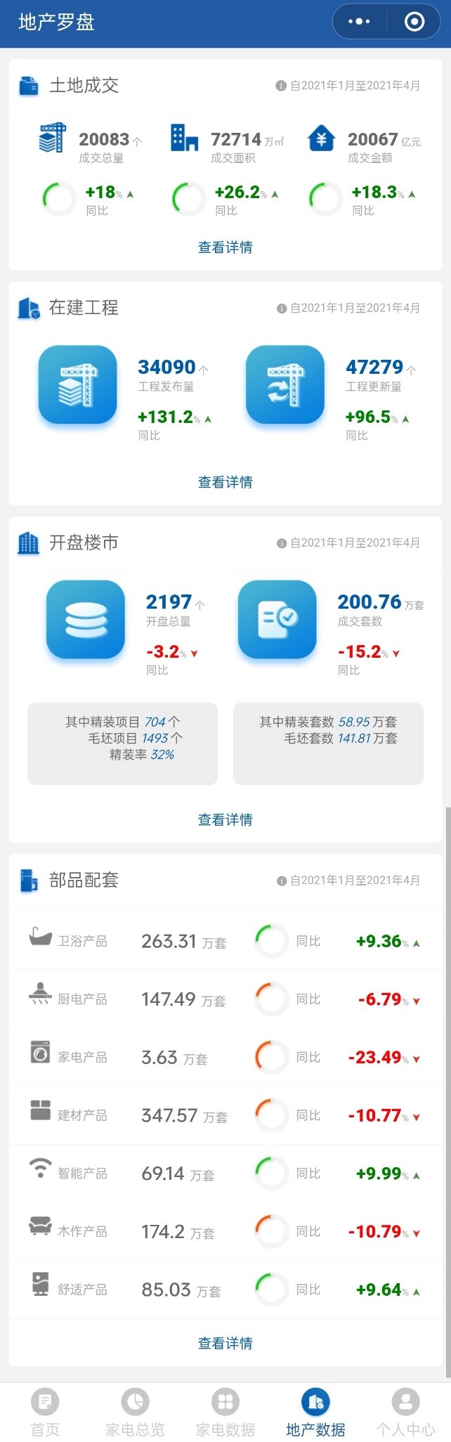 日前,奥维数据罗盘5.0-微信小程序新品正式发布,本次奥维数据罗盘迭代,新增“地产数据模块”,升级后的数据罗盘小程序可以随时查看土地成交、在建工程、开盘楼市、部品配套等前装市场信息,真正实现从地产前端市场到家电零售末端市场的数据贯通,让家电、地产及相关领域的用户能够全面了解家电市场整体市场,精准做出决策。