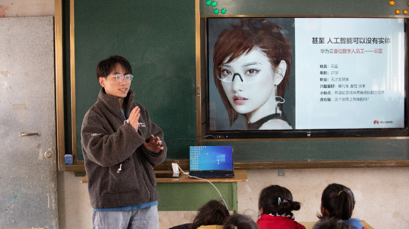 任星为孩子们介绍华为云首位数字人员工“云笙”