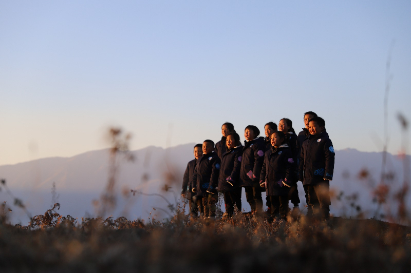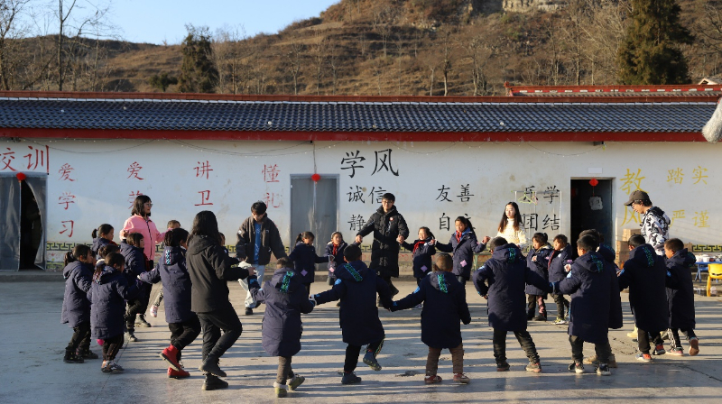 在彝族的歌舞里,老师和孩子们迎接着新年的阳光