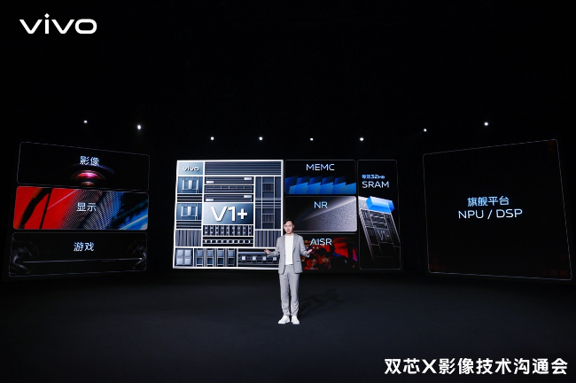 vivo执行副总裁胡柏山在沟通会上表示,自研芯片V1+既是专业影像芯片,又是显示性能芯片,vivo将以兼容性与功能性的全面提升,带来第二代双芯旗舰新标准。