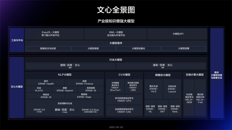沿着这样的思路,飞桨文心大模型全景图全面升级,发布10个大模型,形成了涵盖基础大模型、任务大模型、行业大模型的三级体系,全面满足产业应用需求;发布大模型开发套件、API和内置了文心大模型能力的EasyDL和BML开发平台,全方位降低应用门槛;共创共享飞桨生态,同时建设大模型创意和探索社区旸谷,让更多人零距离体验最先进的AI大模型技术,激发创新与创意。