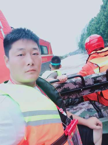 图为杜军杰在郑州英勇救灾