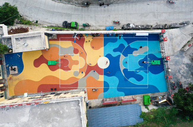 除运动场所外,操场也被设计为舞台、游戏场和美术课堂,通过配套的丰富玩具和文创产品,帮助孩子们健身益智,快乐成长,包括“姚基金”捐赠的篮球架,以及“山海情深”篮球服等。