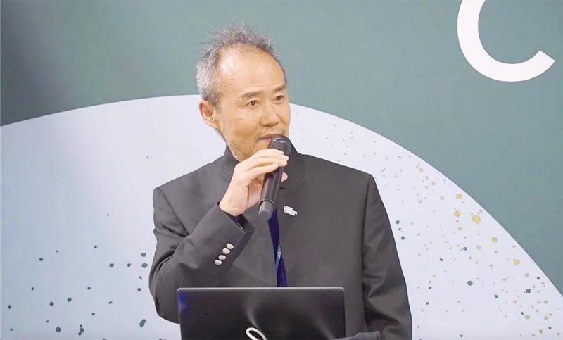 万科集团创始人、大道应对气候变化促进中心创始人王石在2021年格拉斯哥气候变化大会中国企业馆开幕式上致辞。(大道应对气候变化促进中心供图)