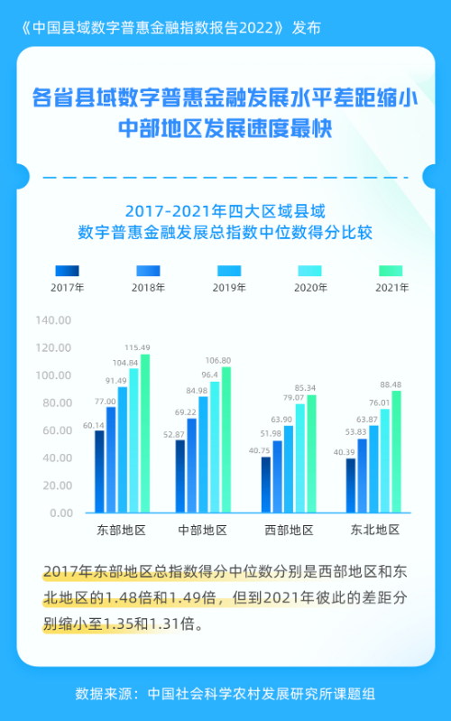11月29日,数字金融助力全面推进乡村振兴研讨会在京举行。会上,中国社会科学院农村发展研究所发布《中国县域数字普惠金融指数报告2022》(下称“报告”)。报告显示,我国县域数字普惠金融总体发展水平持续提升,各省发展差距缩小,其中,中部地区发展速度最快。