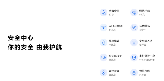 很多人会遇见的类似骚扰电话、短信,或者钓鱼网站,木马病毒等,时刻威胁生命财产安全,华为HarmonyOS 3升级的 “安全中心”可以为此提供当前设备的整体安全画像和安全情况:比如病毒查杀、骚扰拦截、支付保护中心使用等。另外,用户还可以查看设备30天的安全保护记录,并为用户提供主动帮助,并提供相应的建议。