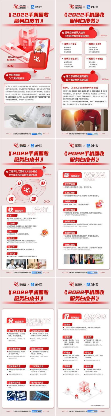 《白皮书》指出:手机上门回收服务必须遵从“快暖安好”4大原则。这是根据速回收平台1000万客户服务案例综合提炼而来,惟有“快(高效服务)、暖(温暖服务)、安(安全服务)、好(美好服务)”四大核心,才能建立起完整的回收服务标准。