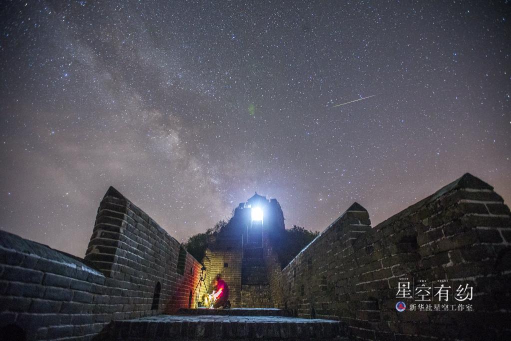 北京市天文摄影爱好者王俊峰2017年4月23日在河北承德金山岭长城拍摄的天琴座流星雨。(本人供图)