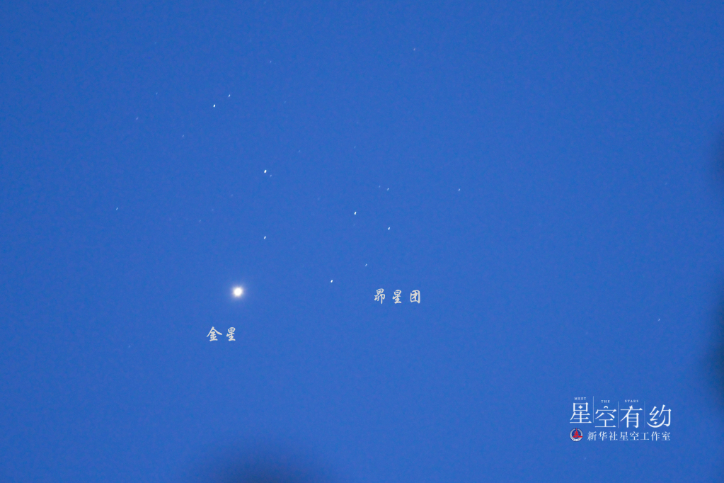 这是北京市天文摄影爱好者王俊峰2020年4月3日在北京房山拍摄的金星伴昴星团。(本人供图)