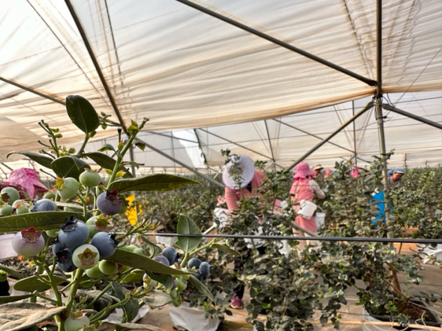 云南蓝莓今年大丰产,当地新农人准备开拓新的销售渠道,借助拼多多等电商平台把高品质的蓝莓卖好。图为云南建水的果农在大棚里采摘蓝莓。