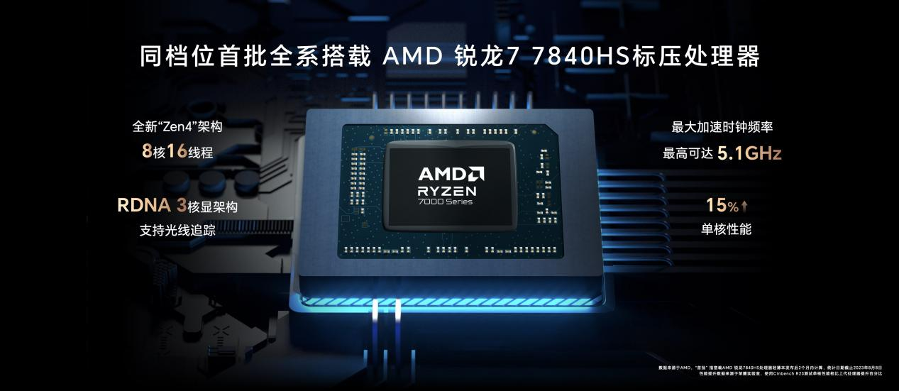 荣耀MagicBook X Pro系列锐龙版是搭载最新AMD 锐龙7 7840HS标压处理器的轻薄本。该芯片采用全新4nm制程工艺和Zen4架构,8核16线程,最大加速时钟频率可达5.1GHz,单核性能提升15%;在Photoshop和AfterEffect渲染导出大文件场景下,仅需138秒和391秒,渲染导出速度相比竞品最高提升了19%,大大提升用户的工作和学习效率。