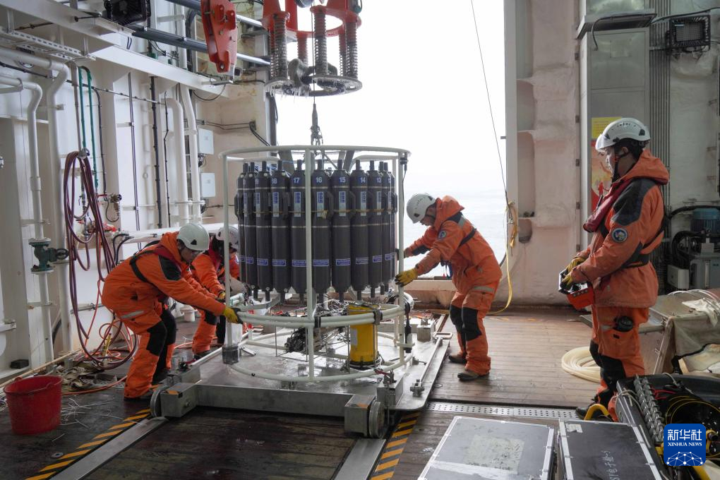 这是科考队员在北极点附近执行海洋综合调查作业(9月5日摄)。