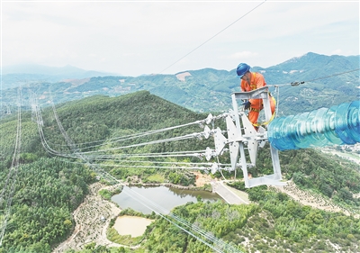 近年来,我国在特高压输电技术领域推动标准国际化工作达到了新高度。图为施工人员在福建北电南送特高压交流输变电工程线路上作业。新华社记者 林善传摄