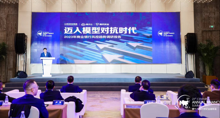 在近日举办的“第十八届金融年会·21世纪金融发展(丽泽)年会”上,21世纪经济报道联合腾讯安全、腾讯云发布《迈入模型对抗时代——2023年商业银行风控趋势调研报告》(下称《报告》),通过调研百余家银行机构以及十余位银行CRO(首席风险官)闭门研讨,呈现当前银行机构风控趋势的最新进展与主要挑战。