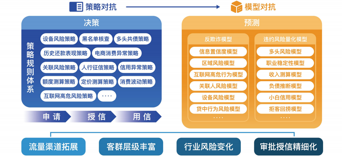 因此,受访银行普遍在风控策略变革方面正形成“新共识”——即风控策略正从传统的“策略对抗”,进入以“模型对抗”为主的新时代。原因是以往,银行机构的风控策略主要基于静态模型+动态策略,并通过不断增补完善风控规则应对外部变化。但现在,客群变化加快、黑产加速利用Al等新形势下,在调整风控策略的基础上,还要强化风控模型的迭代优化。