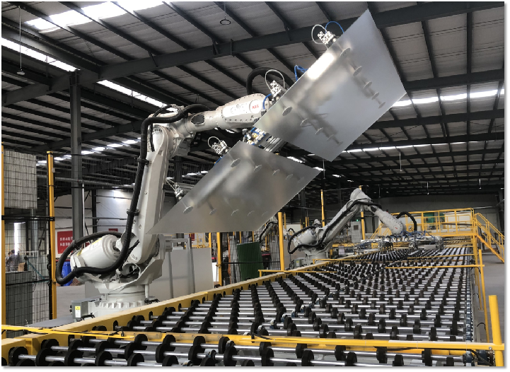 “通过使用全自动浮法玻璃生产装置、智能在线检测系统、智能切割设备、搬运机器人等核心技术和装备,以及DCS和PLC控制系统,实现配料、融化输送、切割包装全自动化生产,整个生产过程通过远程控制并实现了现场无人操作。冷端方面,通过采用全自动切裁和集装片机器人等先进的控制系统,大幅提升了超薄浮法玻璃的切裁效率和成品率,保证了生产产量。”蚌埠中建材信息显示材料有限公司副总经理吴华东说。