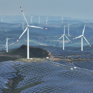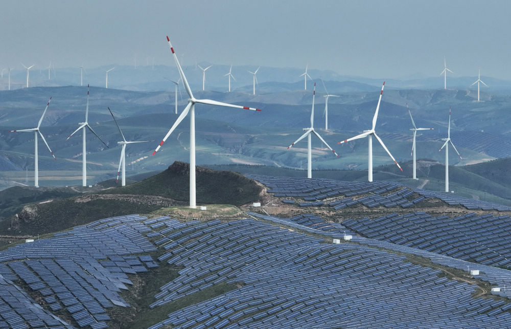 这是2023年9月2日拍摄的承德市丰宁满族自治县万胜永乡万胜永村附近的一处风光互补发电场(无人机照片)。新华社记者杨世尧 摄