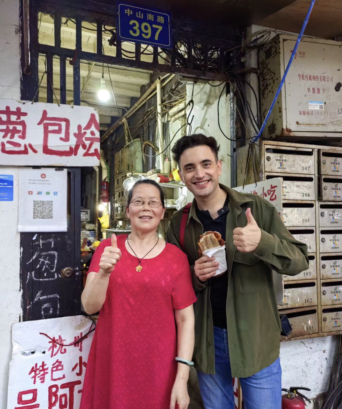 在西湖边卖了30多年葱包烩的吴阿姨在家门口接待全球游客