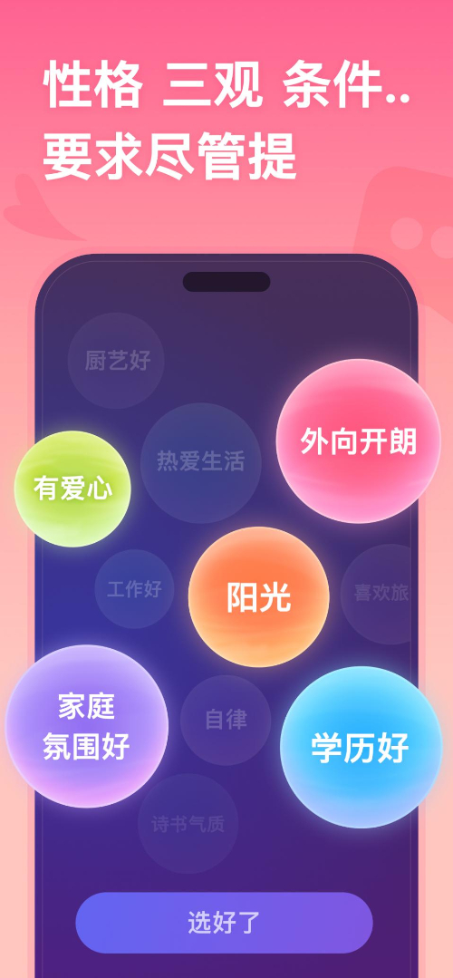 牵手App的核心理念是帮助用户找到最契合的另一半。无论用户看重的是爱好、三观,还是性格、条件,牵手App都能提供超过3000+详细标签,让用户描绘出自己理想的对象,从而在茫茫人海中找到真正适合自己的伴侣。