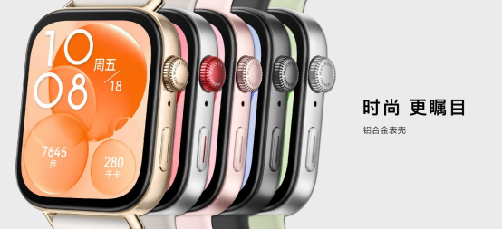 华为FIT系列以独特的方形设计,历经四年三代,在外观设计、材质工艺、屏幕尺寸、屏占比等维度全面焕新。华为WATCH FIT 3此次采用阶梯型屏幕设计,搭载1.82”方形大屏,屏占比由上代的72%增加至77.4%,显示面积增加10%,带来更立体、更宽广的视觉体验;表体轻至26g,机身厚度为9.9mm,为华为历代中最轻产品之一,同时其采用表带快拆工艺,采用华为Quicklink表带快拆设计,无需工具,一按即可快速拆卸。设计上,新增金属太阳纹旋转表冠,交互体验更流畅,让年轻用户戴着轻松,看着靓眼。