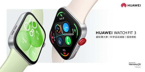此外,华为WATCH FIT 3搭载全新活力三环、减脂塑形、智能运动推荐、操场跑步模式等新增运动功能,帮助用户养成自律运动和健康生活方式;搭载全新TruSeen5.5心率监测技术,使监测到的运动健康数据更加专业、准确、全面;TruSleep4.0 科学睡眠再升级,让用户安享健康好睡眠;首发鸿蒙方表UX设计风格,带来多彩新视觉和创新体验。华为WATCH FIT 3在国内还享有睡眠呼吸暂停风险筛查、心律失常提示等健康管理服务,还加入了301医院等权威医院发起的心脏健康研究、呼吸健康研究等健康研究,可以为消费者带来更专业的健康守护。