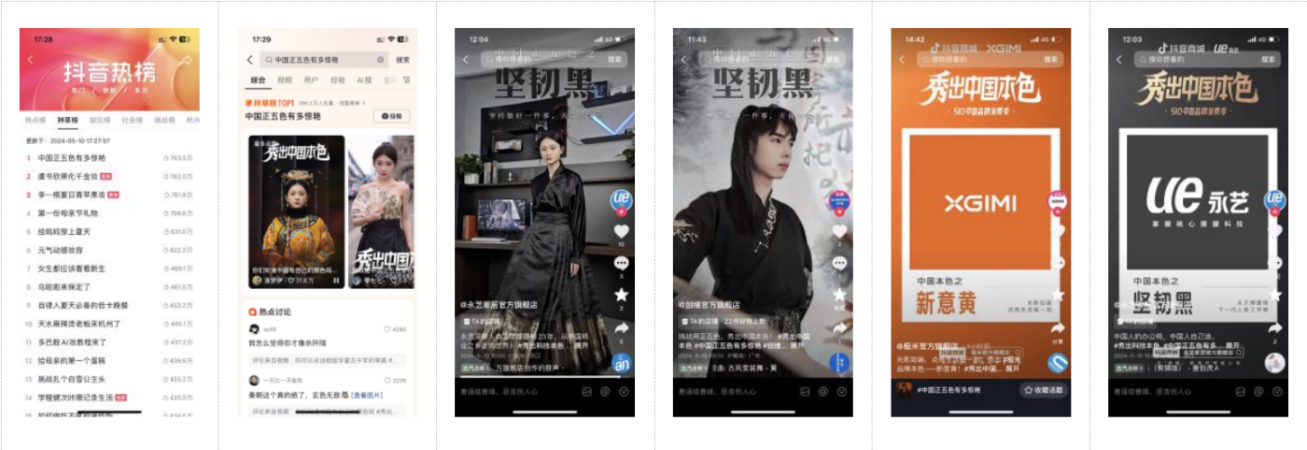 时下的短视频平台,关于色彩的认同感也早已从“多巴胺消费”转向#中国正五色有多惊艳 的网络热搜。正如一位高赞评论所说的那样,“中国传统色不仅仅是色彩,更是古香古色的故事和文化,而你永远可以相信华夏五千年的审美。”