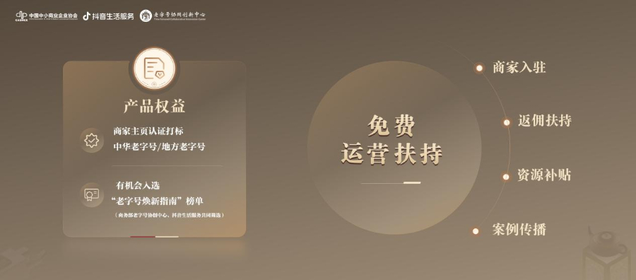 他介绍到,在运营支持方面,抖音生活服务将对老字号商家进行免费培训,并推出符合条件下的返佣政策,提供亿级流量和货品补贴、百万传播资源帮助老字号焕新。