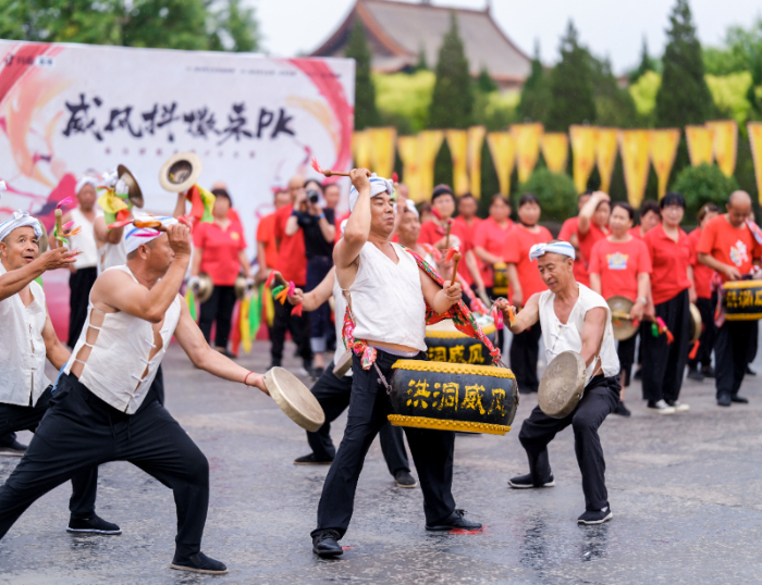 流传于晋南地区的威风锣鼓是由锣、鼓、铙、镲四种乐器共同演奏的打击乐艺术形式,已有4000年历史。2006年,其被列入第一批国家级非物质文化遗产名录。在临汾,威风锣鼓群众基础深厚,村村有锣鼓、爱锣鼓,不同区县长期流传着多样的锣鼓曲牌,也在此基础上形成了各具特色的锣鼓队伍。