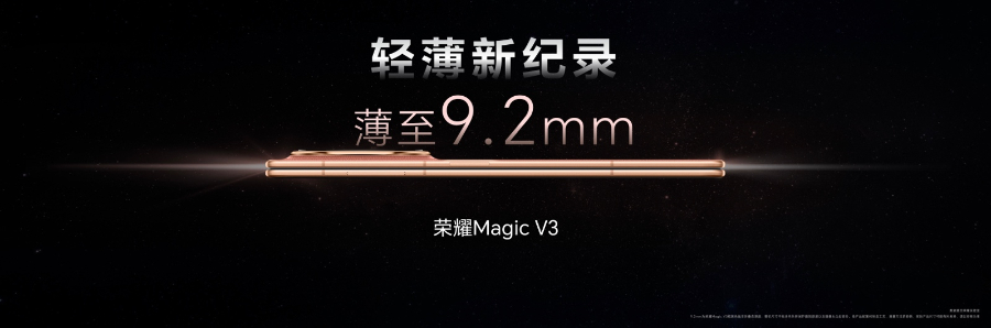 折叠屏是智能手机领域的重要创新形态,荣耀首款折叠屏荣耀Magic V,以闭合态14.3mm的机身在发布时即成为同期最薄折叠屏产品之一;荣耀Magic Vs采用自研“鲁班零齿轮铰链”及多种航天级轻质材料;荣耀Magic V2系列以薄至9.9mm的机身,助力内折大屏手机进入“毫米级”,实现折叠屏比直板机更薄。距荣耀Magic V2发布一周年后的今天,荣耀Magic V3,以9.2mm机身,实现轻薄折叠屏的再次突破。