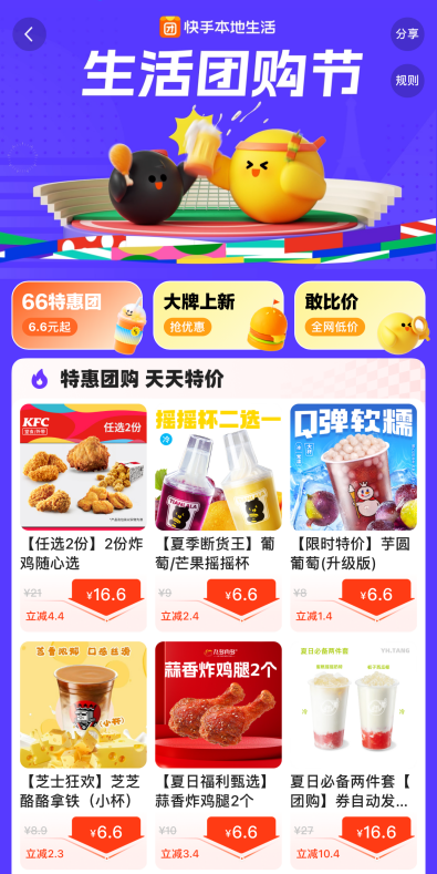 本地分会场则是围绕用户观赛消费需求,在奥运、暑期、七夕等关键节点,向用户推出具备极致性价比的团购好货,同时面向用户发放补贴券。截至目前,已有上万家商家参与到本地分会场的相关大促活动中,而快手也将通过磁力本地推等商业产品,进一步提升本地商家的经营效率。