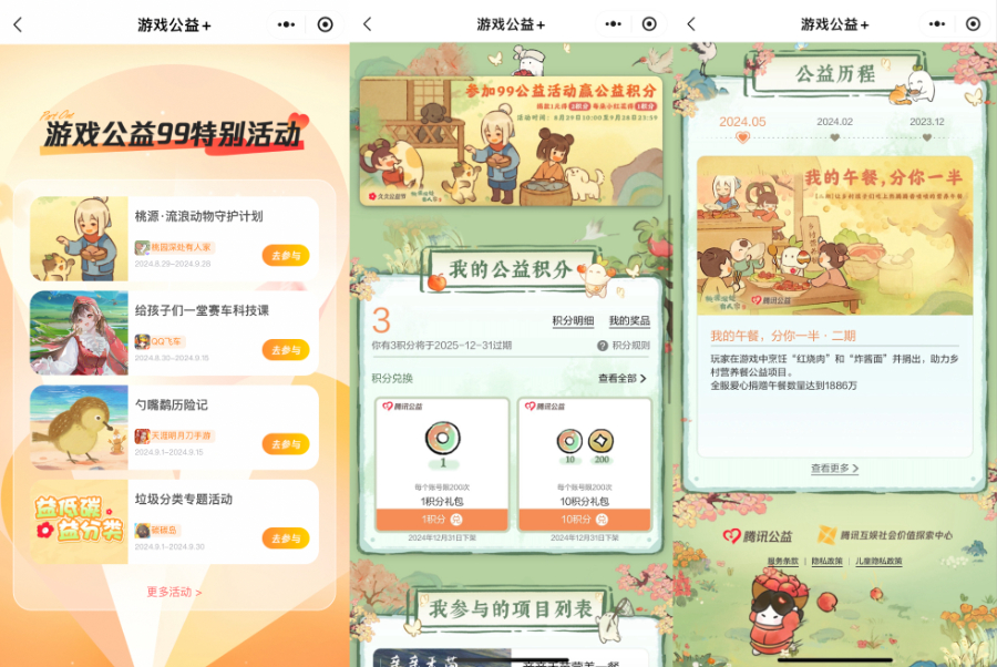“游戏公益+”部分界面