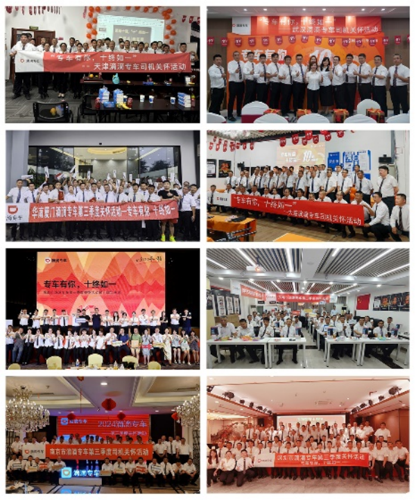 本季度专车司机荣誉激励会,特别设置了“长期陪伴奖”“合作丰收奖”等奖项,感谢师傅们十年来的坚守与陪伴,见证专车每一次服务升级和里程碑式的成长。上海、天津等城市的专车司机荣誉激励会现场,平台还为多位司机师傅共同举办了“8月集体庆生”,现场收集司机师傅的心愿卡等活动。成都专车荣誉激励会现场设置了抽奖活动,智能手机、按摩腰带、充电卡等多种好礼被司机师傅“带回家”。 南京专车荣誉激励会现场,除了为到场司机师傅们准备精美的伴手礼,平台还表彰了安全驾驶好服务的司机。