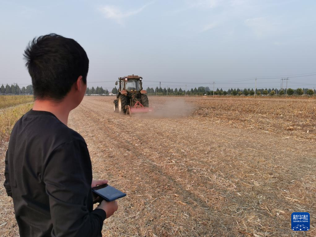 新华社郑州10月14日电(记者马意翀、郑家宝)田野上,一台拖拉机的驾驶室内空无一人,只有方向盘自动调整着前进的方向,不一会儿3亩地的玉米秸秆还田作业就已完成。