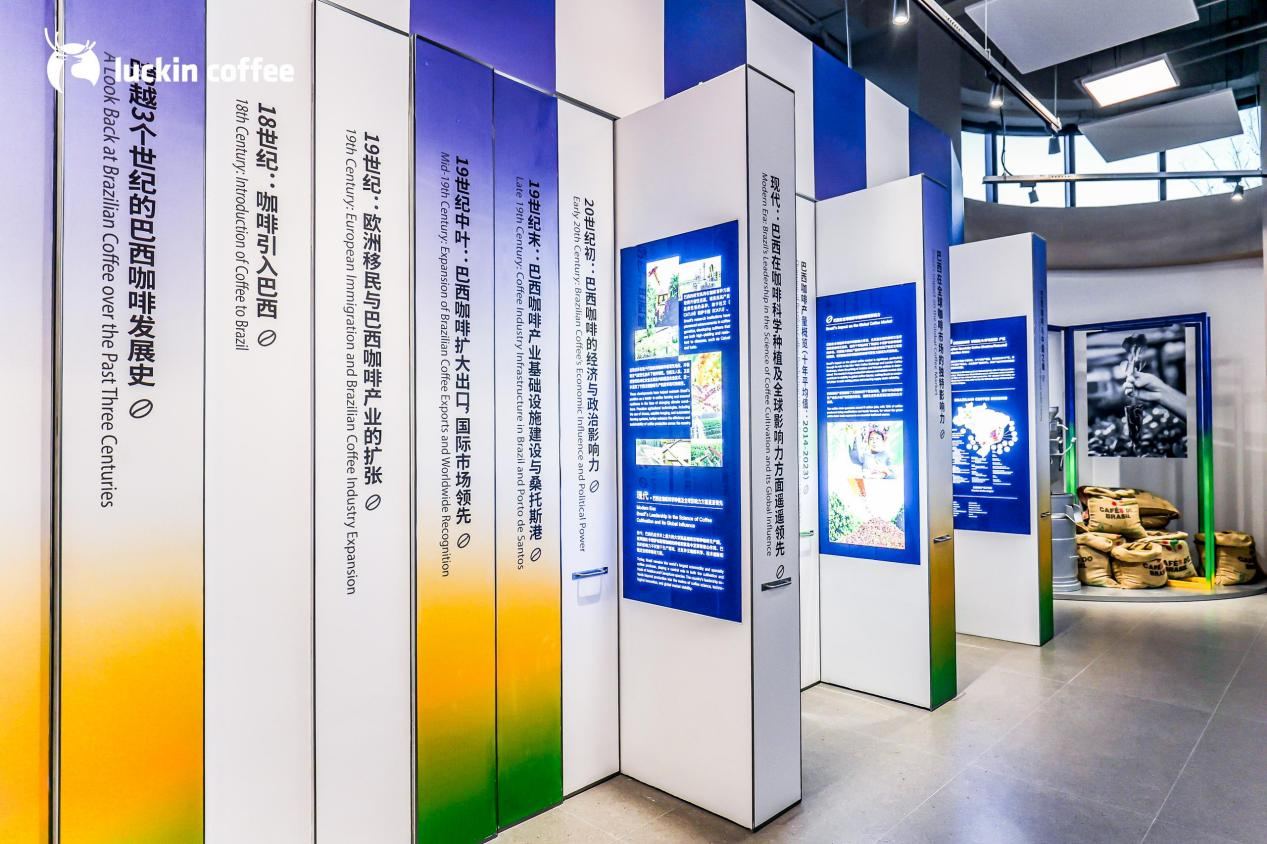 瑞幸巴西咖啡博物馆,以高品质咖啡的诞生为主线,生动呈现了巴西咖啡产业近300年的发展史和瑞幸咖啡深入全球的供应链布局。同时,以历史元素还原重量级专业咖啡赛事卓越杯COE的场景,将瑞幸咖啡与巴西咖啡产业巧妙结合,完整勾勒出一颗甄选的巴西咖啡生豆从产区出发,进入瑞幸咖啡专业高效垂直供应链,最终成为消费者手中一杯杯高品质咖啡的完整历程。