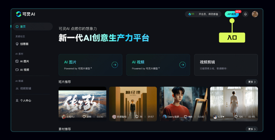 API服务调用:可灵AI官网 klingai.kuaishou.com
