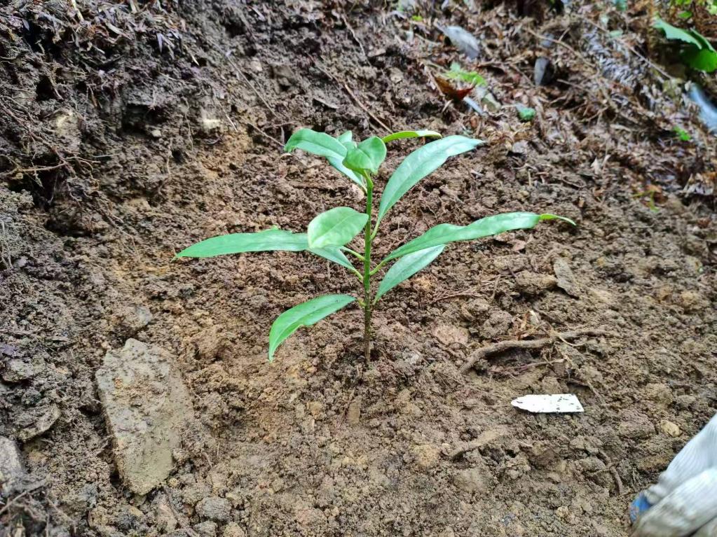 图为人工培育并实施野外回归的苍背木莲两年生幼苗。(受访者供图)