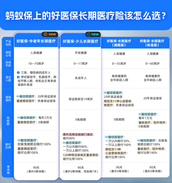 随着国内普惠保险体系的逐步健全,保险服务覆盖面正不断扩大。12月10日,互联网保险优选平台蚂蚁保宣布,旗下百万医疗险品牌“好医保”推出了专门针对中老年、慢病群体的“好医保·中老年长期医疗”(简称“好医保”中老年版)。除了新上线的中老版本,“好医保·少儿长期医疗”近期也进行了版本更新,优化了赔付比例、特药保障等产品责任。