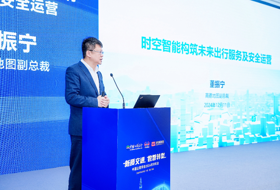 12月10日,“中国公路学会2024学术年会”在深圳举办。本次会议以“新质交通 数智转型”为主题,旨在推进公路交通基础设施数字转型、智能升级、融合创新,助力交通强国建设。高德地图副总裁、高德云图总经理董振宁在“出行服务论坛”作了《时空智能构筑未来出行服务及安全运营》主题发言,介绍了我国公路交通当前面临的挑战及高德为提升道路安全所采取的最新举措。