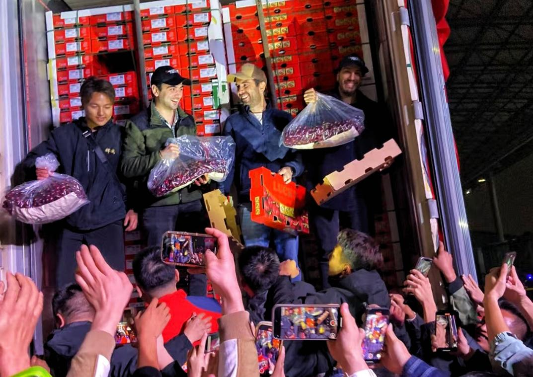 今年车厘子产季,蜂拥到港口和批发市场的不仅有传统水果采购商,还有来自电商平台的主播和选品团队。有的团队甚至在现场搭建直播间,这边车厘子刚刚卸货,那边直播间就已经售出,直接打包发走。
