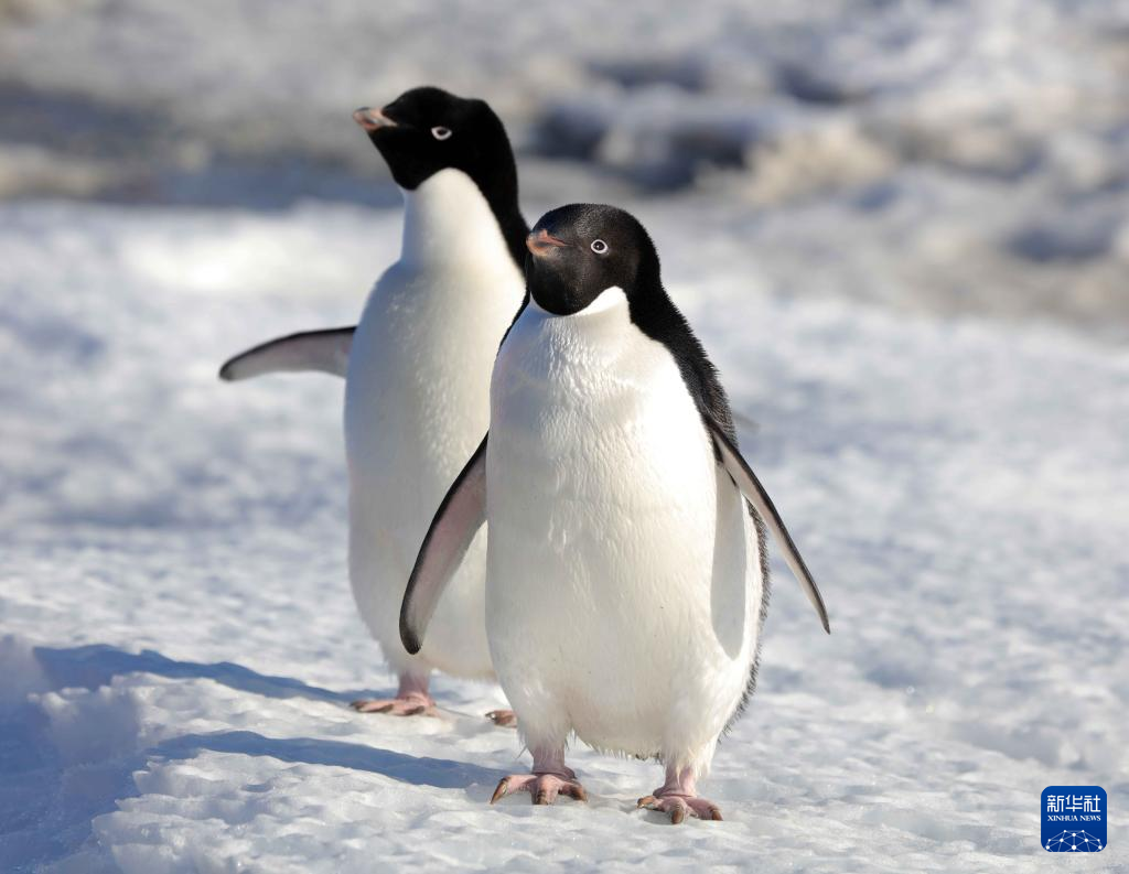小企鹅遥望“雪龙2”号(12月27日摄)。