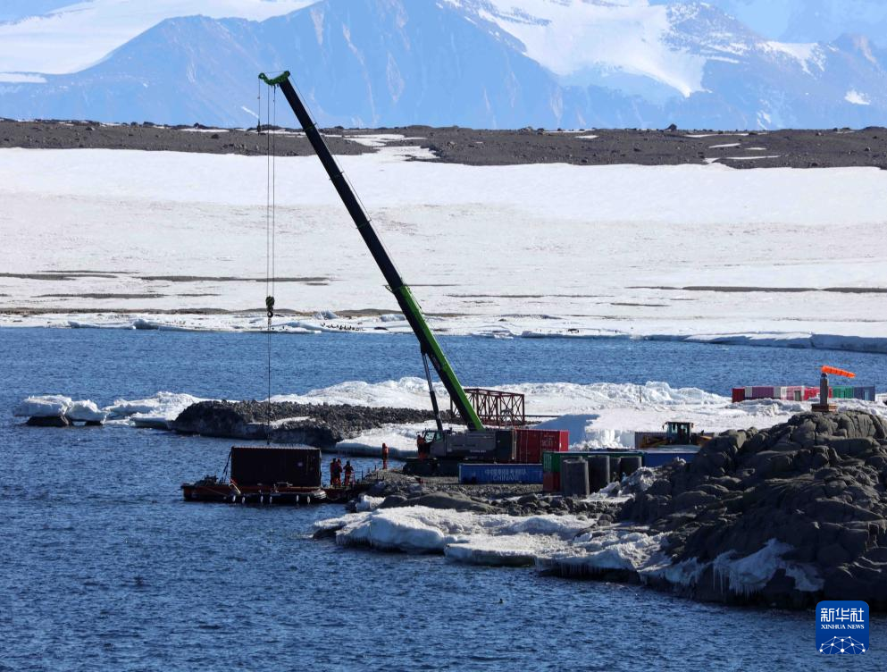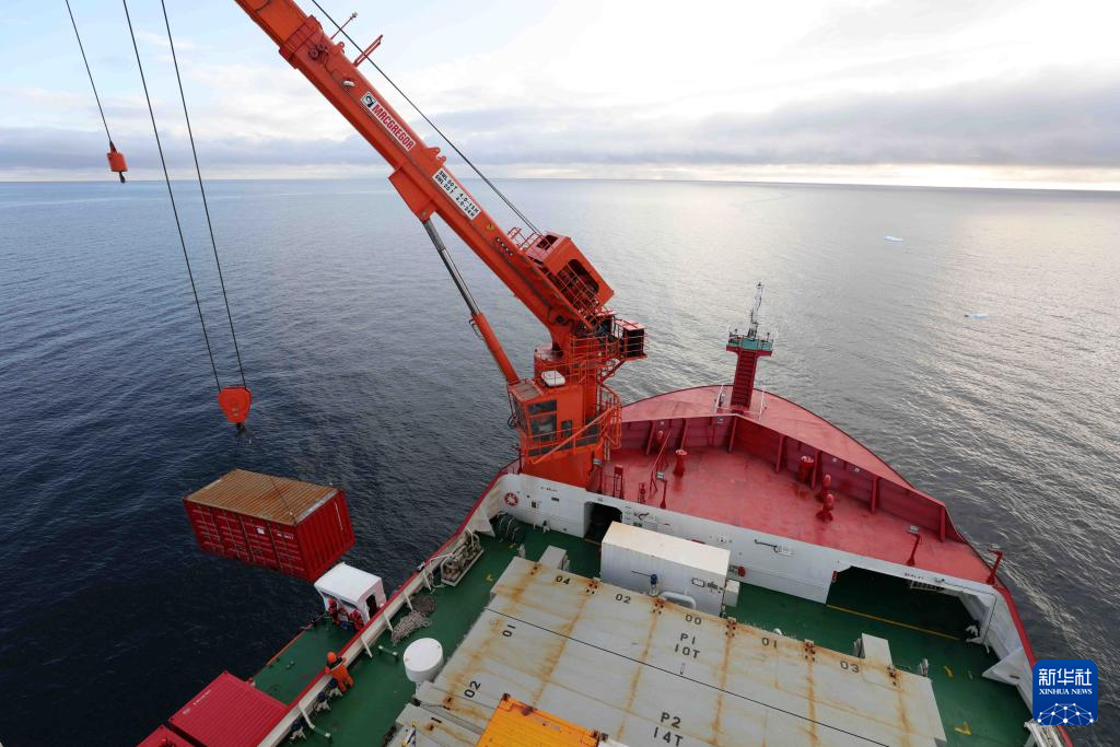 “雪龙2”号在南极秦岭站海域卸货(12月27日摄)。