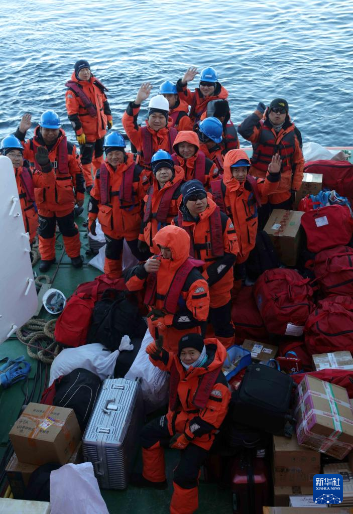 考察队员登上驳船,准备上站(12月25日摄)。
